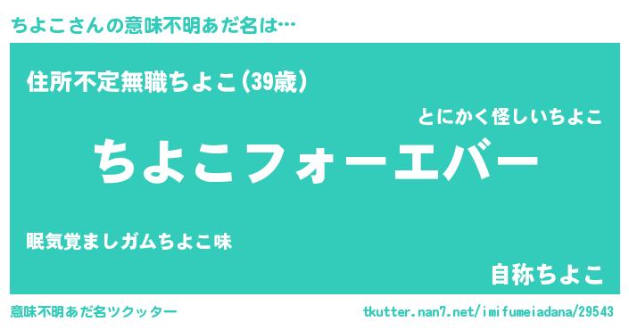 | 女子向けラノベタイトル風あだ名 | 『ちよこの雑貨屋さん』『闇のちよこ』 |