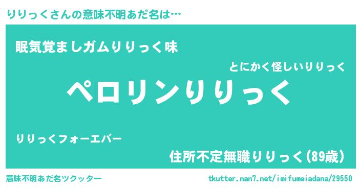 | 男性向けラノベタイトル風あだ名 | 『りりっくの憂鬱』 |