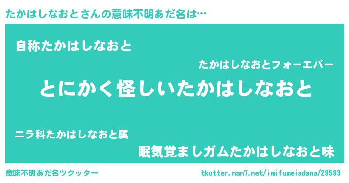 | 男性向けラノベタイトル風あだ名 | 『たかはしなおとの嫁は女の子じゃないと思った?』 |