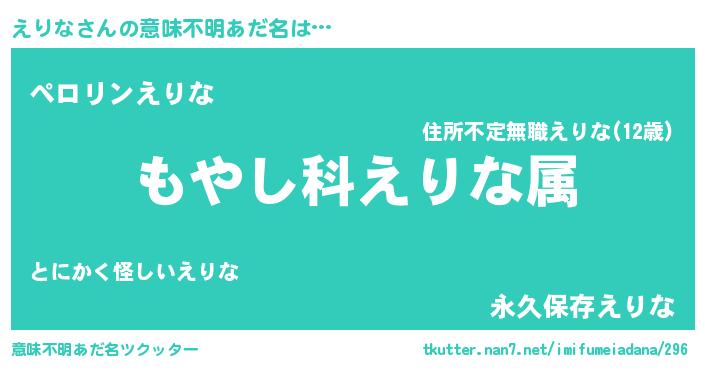| ヘコむあだ名 | 『えりもー』『えりな(笑)』 |