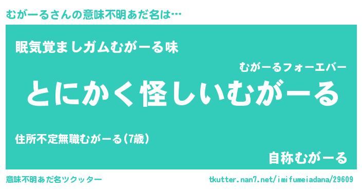 | ヒーロー風カッコイイあだ名 | 『暗黒騎士ムガ』『正義の使者むがーる』 |
