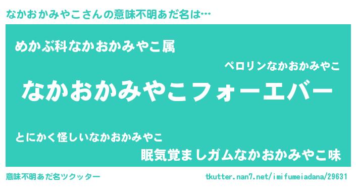 | 男性向けラノベタイトル風あだ名 | 『やはりなかおかみやこの青春ラブコメはまちがっている 』 |