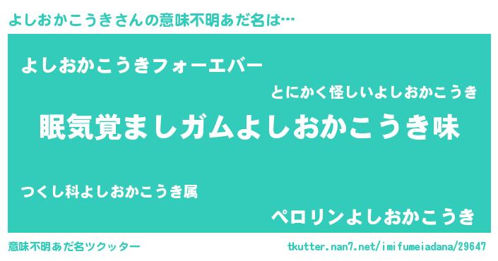 女子向けラノベタイトル風あだ名 | 『よしおかこうき恋絵巻』 |