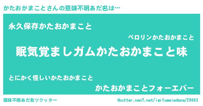 | ヘコむあだ名 | 『かたおかまこと(小並感)』『酢こんぶ』 |