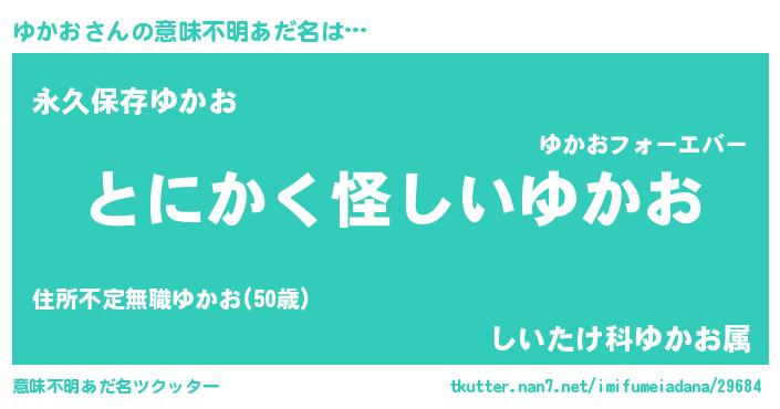 | ポケモン風あだ名 | 『ヒユカオ』『ユカゴンZ』『ゼニユカ』 |