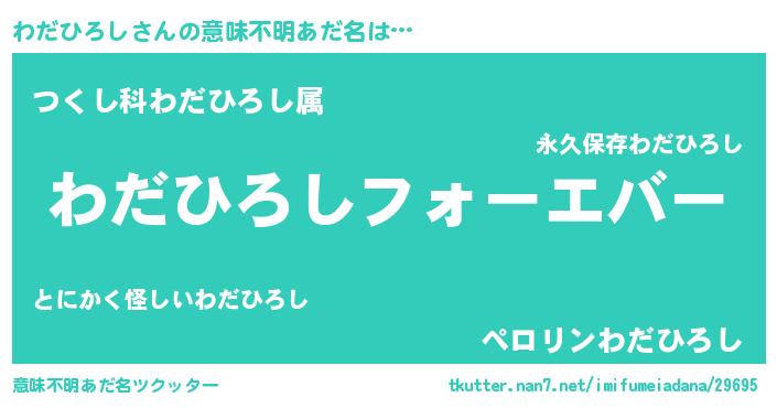 | ファンタジー風あだ名 | 『エターナルワダヒロシー』『ワダフェル』 |