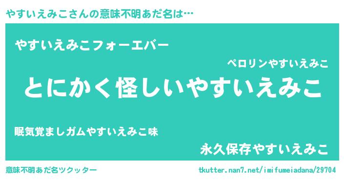 | ポケモン風あだ名 | 『ヒヤスイエミコ』『ヤスイダネ』 |