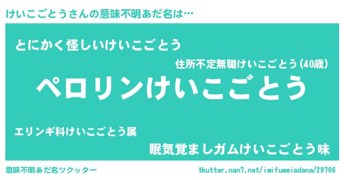 | ピコ太郎風あだ名 | 『ケコ一郎』『ケイ六郎』『ケケ太郎』 |