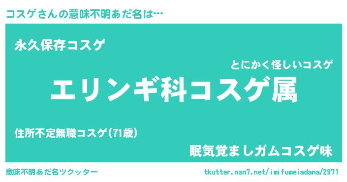 | ヘコむあだ名 | 『コスゲ(苦笑)』『コスぷりん』 |