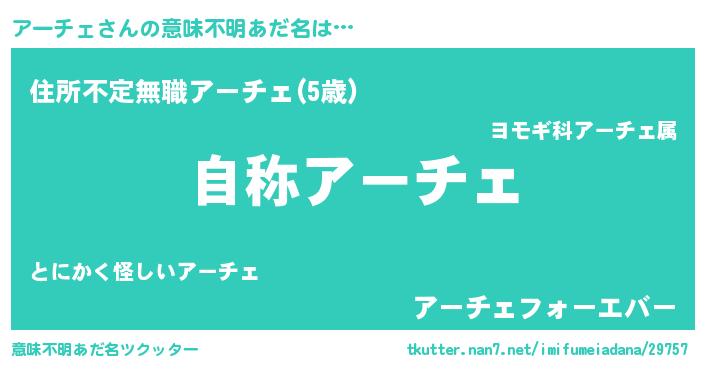 | 男性向けラノベタイトル風あだ名 | 『Re:アーチェから始める異世界生活』 |