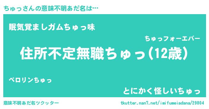 | ポケモン風あだ名 | 『チーュイ』『チュゴンZ』『ヒチュッ』 |