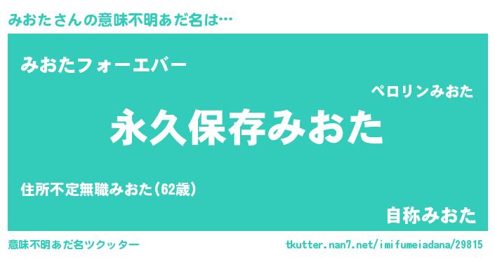 | 男性向けラノベタイトル風あだ名 | 『みおたに滅ぼされるだけの簡単なお仕事です』 |