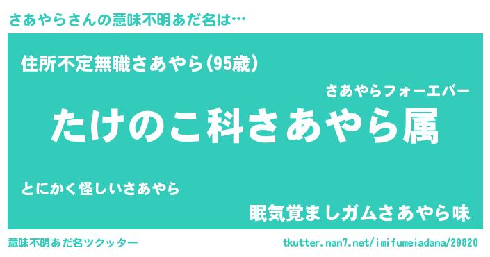 | ヒーロー風カッコイイあだ名 | 『仮面サアダー』『慈愛の使者さあやら』 |