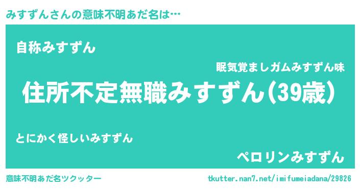 | 男性向けラノベタイトル風あだ名 | 『この素晴らしい世界にみすずんを!』 |