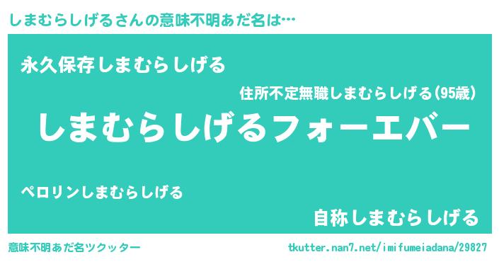 | 欧米人風あだ名 | 『しまむらしげる・ステッグマイヤー』 |