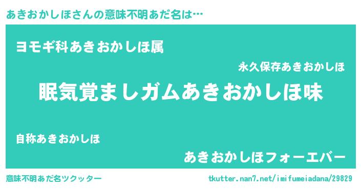 | 男性向けラノベタイトル風あだ名 | 『おまえをオタクにしてやるから、俺をあきおかしほにしてくれ! 』 |
