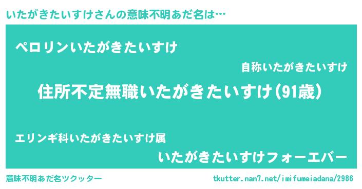 | 女子向けラノベタイトル風あだ名 | 『いたがきたいすけが死なない童話 林檎のいたがきたいすけの診療簿』 |