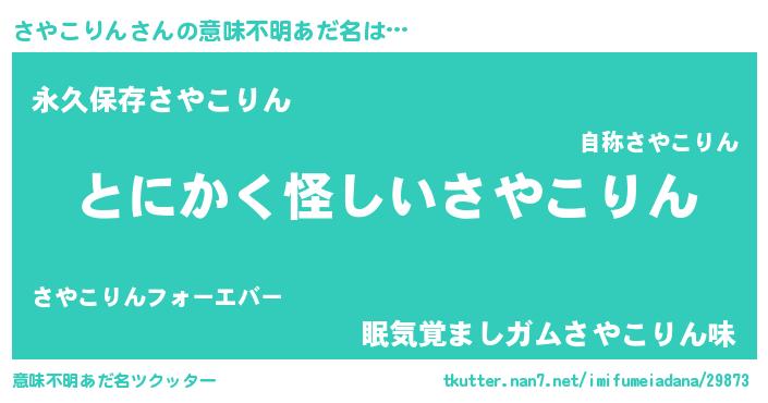 | ヒーロー風カッコイイあだ名 | 『炎刃騎士サヤ』『ネオサヤコリン』 |