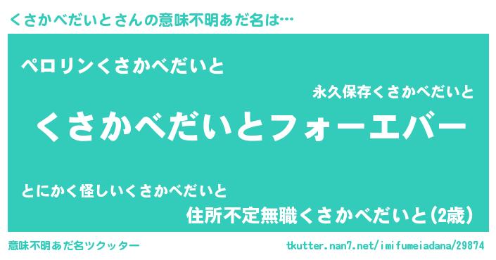 | 男性向けラノベタイトル風あだ名 | 『やはりくさかべだいとの青春ラブコメはまちがっている 』 |