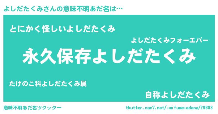 | ヘコむあだ名 | 『よしだたくみ(遠い目)』『よしっちょ』 |