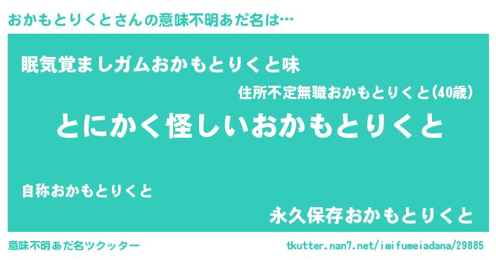 | 胡散臭い通販商品みたいなあだ名 | 『信頼と実績のサプリメント…その名も「おかもとりくと」』 |