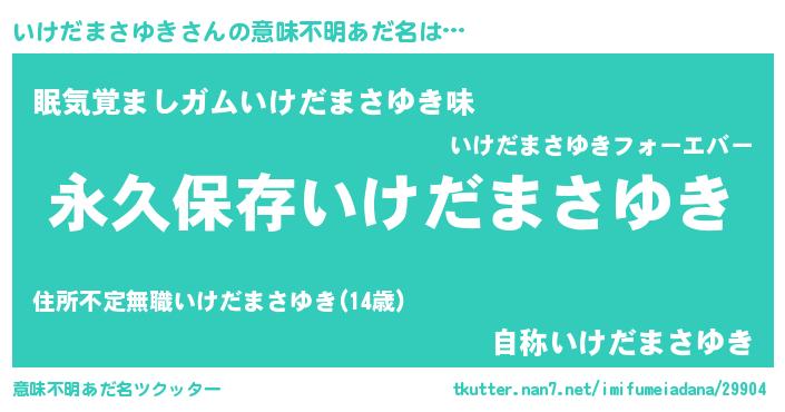 | 胡散臭い通販商品みたいなあだ名 | 『来世でも幸せになれる健康食品…その名も「いけだまさゆき」』 |