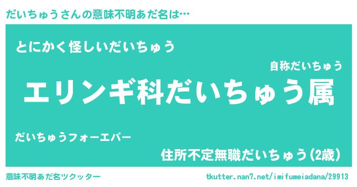 | 男性向けラノベタイトル風あだ名 | 『ダイチュウスレイヤー』 |
