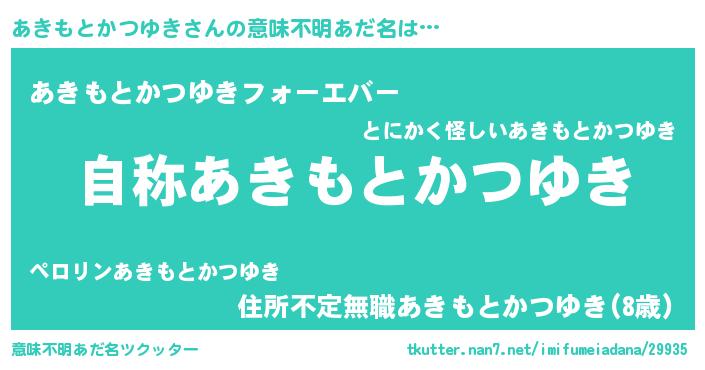 | 女子向けラノベタイトル風あだ名 | 『あきもとかつゆきなんてお断りですっ。』 |