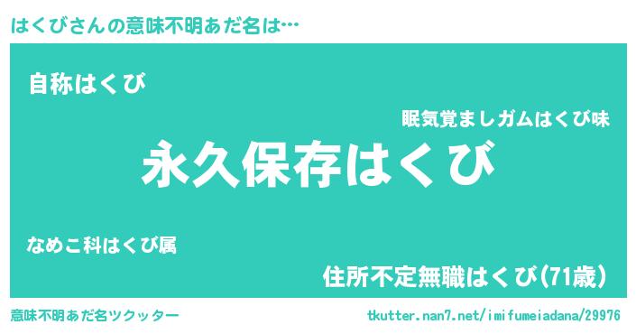 | ヘコむあだ名 | 『はくび(笑)』『豆乳』『はくもー』 |