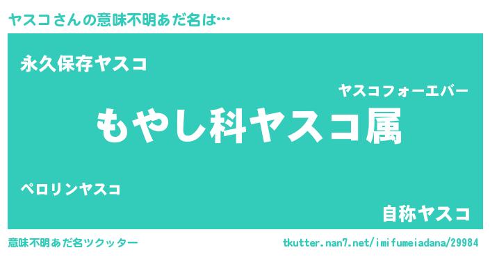 | 男性向けラノベタイトル風あだ名 | 『転生したらヤスコだった件』 |