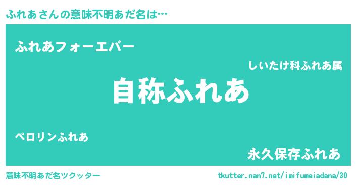 | 欧米人風あだ名 | 『アンジェラ・ふれあ』 |