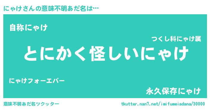 | 男性向けラノベタイトル風あだ名 | 『にゃけの嫁は女の子じゃないと思った?』 |