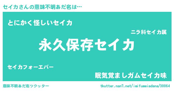 | ヘコむあだ名 | 『セイカ(笑)』『セイを』『なまこ酢』 |