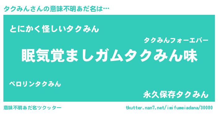 | 欧米人風あだ名 | 『ダニエルタクみん』『ウサインタクみん』 |