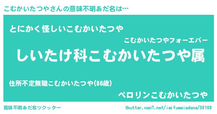 | 欧米人風あだ名 | 『アンジェラ・こむかいたつや』 |