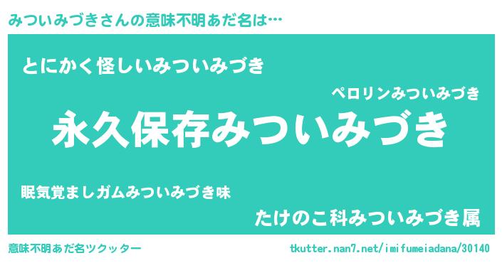 | 胡散臭い通販商品みたいなあだ名 | 『来世でも幸せになれる健康食品…その名も「みついみづき」』 |