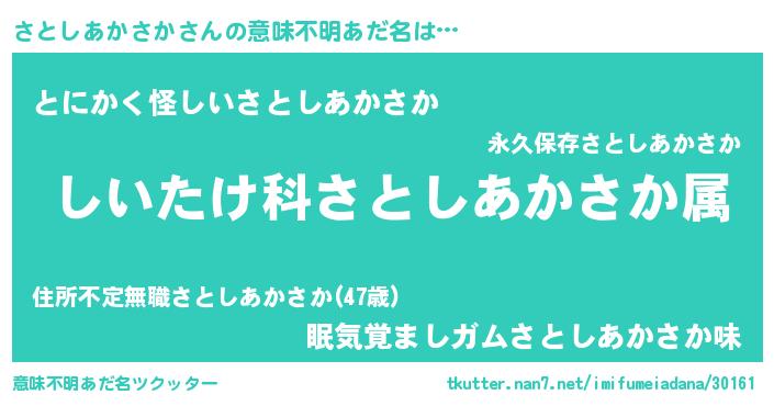 | 男性向けラノベタイトル風あだ名 | 『サトシアカサカスレイヤー』 |