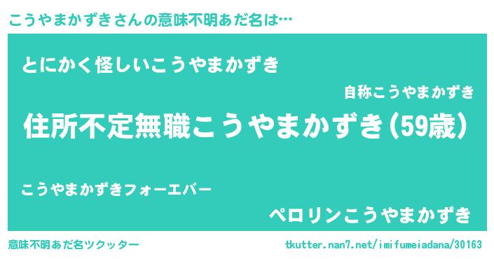| 男性向けラノベタイトル風あだ名 | 『この素晴らしい世界にこうやまかずきを!』 |