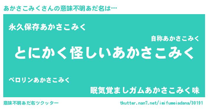 | ヘコむあだ名 | 『あかっぺ』『あかさこみく(笑)』 |
