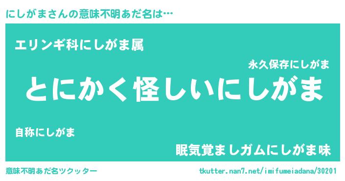 | 胡散臭い通販商品みたいなあだ名 | 『伝統あるサプリメント…その名も「にしがま」』 |