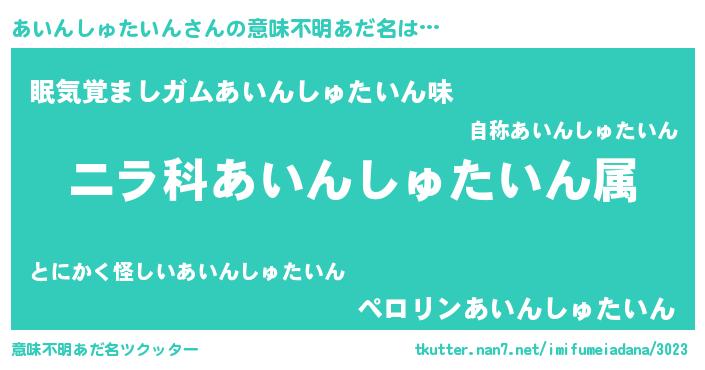 | ピコ太郎風あだ名 | 『アア太郎』『アコ一郎』『アイ次郎』 |