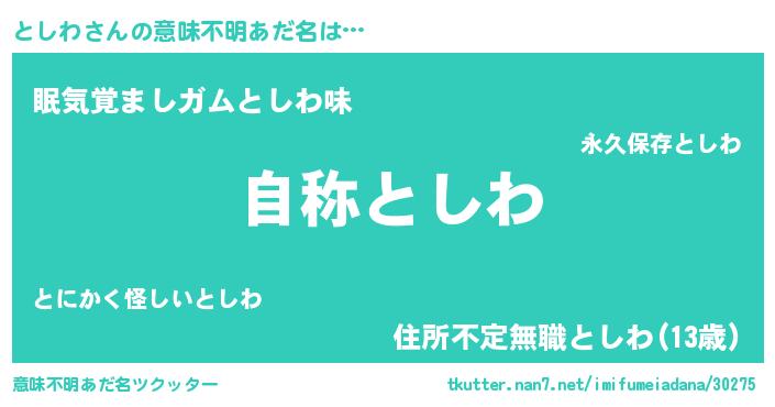 | ヘコむあだ名 | 『としわ(震え声)』『とし太郎』 |