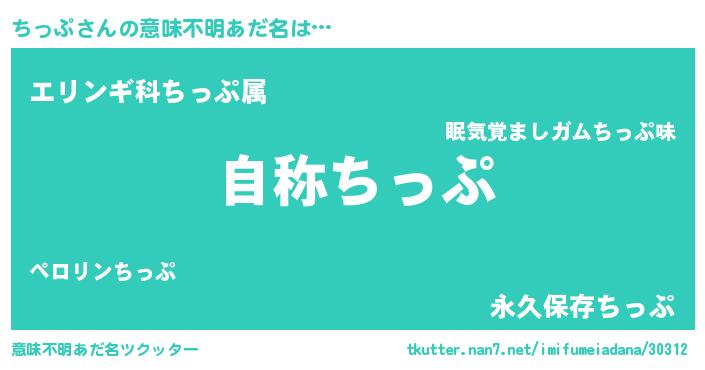 | ヘコむあだ名 | 『ちっぷ(苦笑)』『ちっもー』『牛乳』 |
