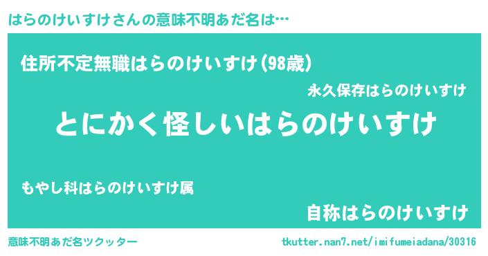 | 女子向けラノベタイトル風あだ名 | 『はらのけいすけは平凡を望む』 |