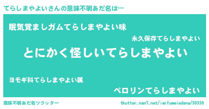 | 女子向けラノベタイトル風あだ名 | 『てらしまやよいの卵を拾いまして』 |