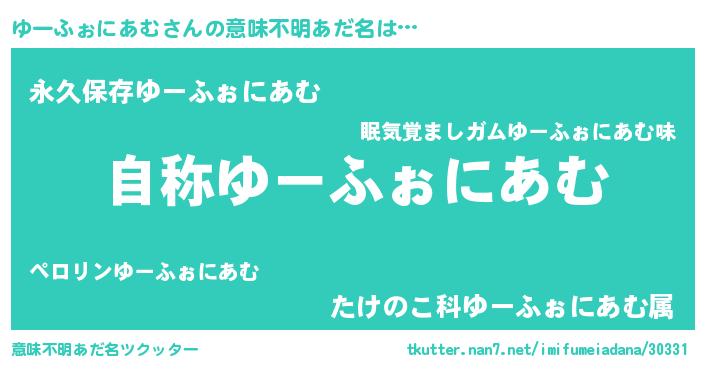 | 男性向けラノベタイトル風あだ名 | 『Re:ゆーふぉにあむから始める異世界生活』 |