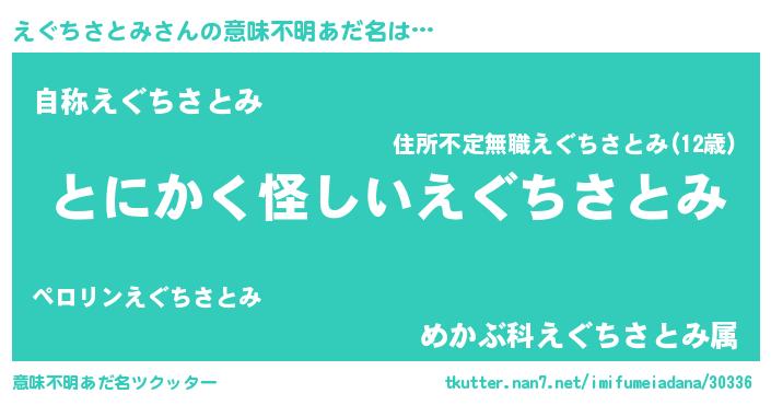 | 欧米人風あだ名 | 『ウサインえぐちさとみ』 |