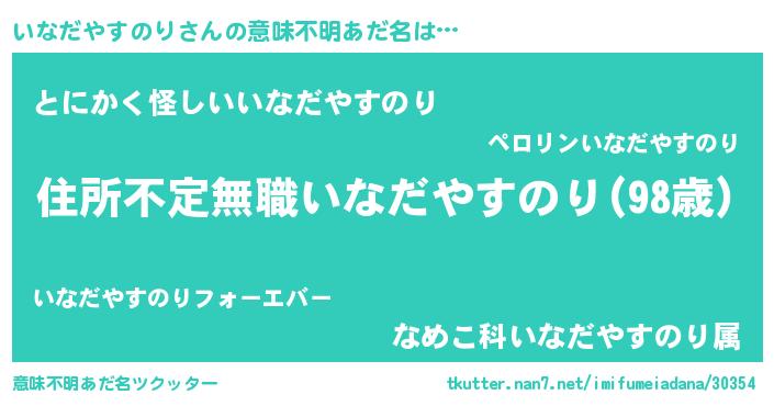 | 男性向けラノベタイトル風あだ名 | 『この素晴らしい世界にいなだやすのりを!』 |