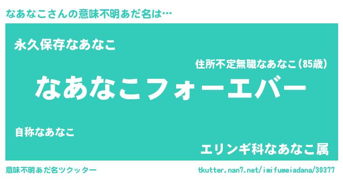 | ヒーロー風カッコイイあだ名 | 『ウルトラなあなこマン』『ネオナアナコ』 |