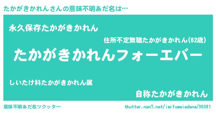 | 男性向けラノベタイトル風あだ名 | 『はたらくたかがきかれんさま!』 |
